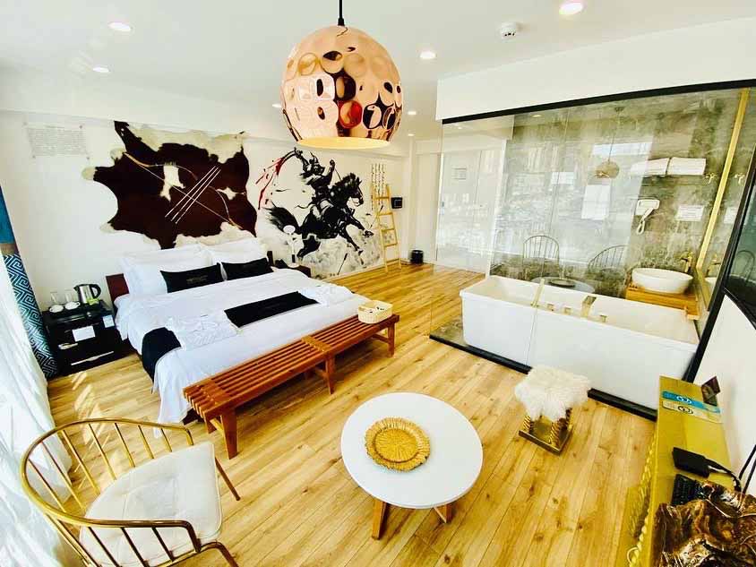 Feel the rage of Chinggis khan, In the evening turn of the main light, turn on the sub light’s then romance will begin. Room is equiped with smart tv, bidet toilet, bathtube, etc…